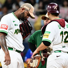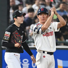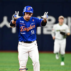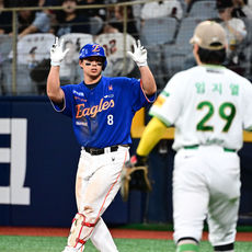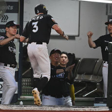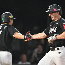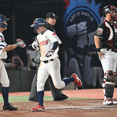 역전 득점 성공 하이파이브하는 김상수와 스티븐슨