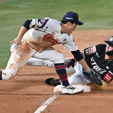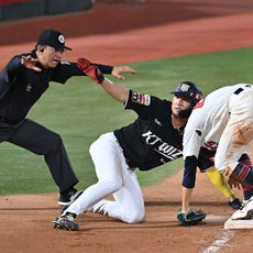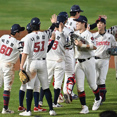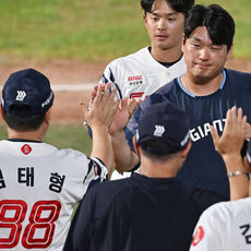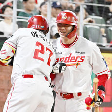 안상현,'솔로포 때리고 바디첵 하이파이브'