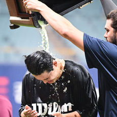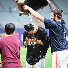 와이스-폰세,'데뷔 첫 10승 문동주 향해 격한 축하 물세례'