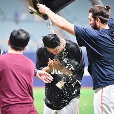 문동주,'행복한 데뷔 첫 10승 축하 세례'