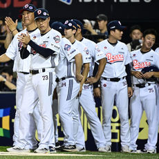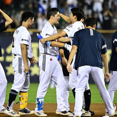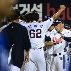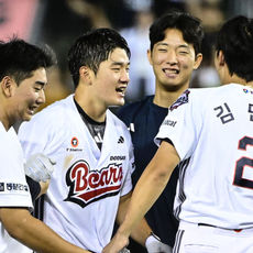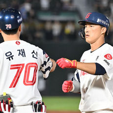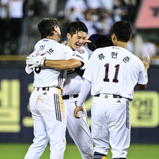 케이브와 기뻐하는 안재석