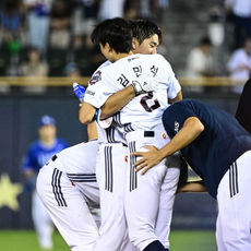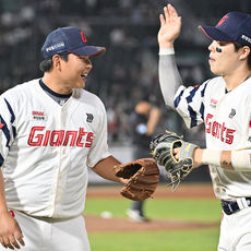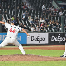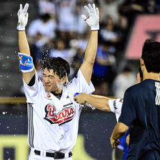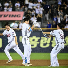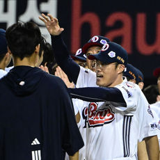 조성환 감독대행, '끝내기타 날린 안재석 향해 격한 축하'