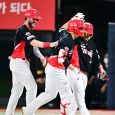 역전 스리런 오선우,'위즈덤-김선빈과 하이파이브'