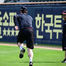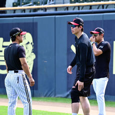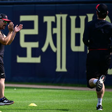 무릎 만지는 홍창기 '9월 복귀를 목표로 훈련'