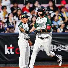 유준규-한준수 홈충돌 아웃판정 항의하는 KT 선수단