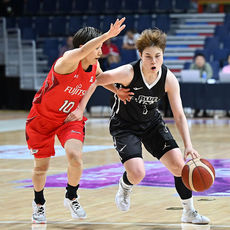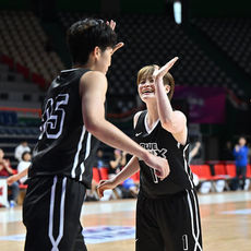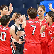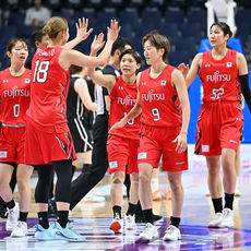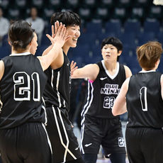 용인 삼성생명에 68-57 승리 기쁨 나누는 후지쯔(일본) 선수들