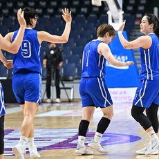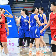 김아름, 역전 3점슛 성공 하이파이브