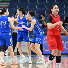 4쿼터 극적인 역전승 기뻐하는 삼성생명 선수들