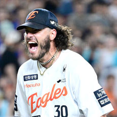 한화 코디 폰세 올 시즌 226번째 삼진에 포효, '이렇게 짜릿할수가'
