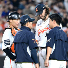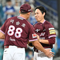 마운드 방문해 폰세 다독이는 한화 양상문 코치