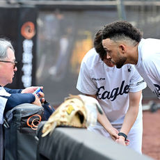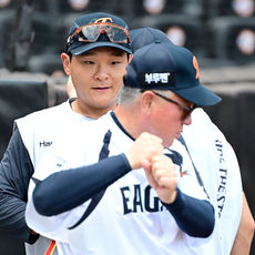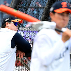 리베라토 컨디션 체크하는 한화 김경문 감독