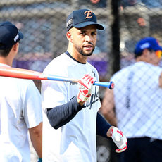 류현진, '배팅 케이지에서 타자들 훈련 함께하며'