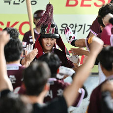 설종진 감독 대행과 승리의 하이파이브하는 김건희