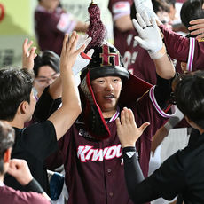 설종진 감독 대행과 승리의 하이파이브하는 송성문
