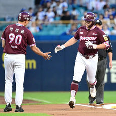키움 임지열, '1회 선제 솔로포에 위풍당당'