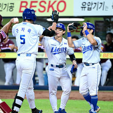 구자욱 역전 스리런포 맞이하는 김지찬-김성윤