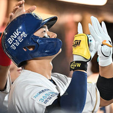 구자욱, '승부에 쐐기를 박는 8회 투런포 하이파이브'
