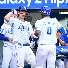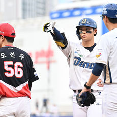 안재석,'우천 취소 아쉬움 날리는 세리머니'