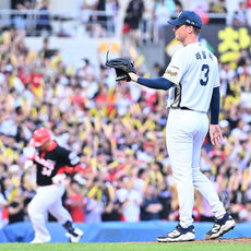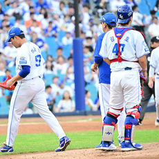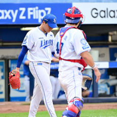 연이은 실점에 고개 떨구는 삼성 선발 이승현