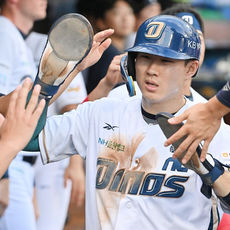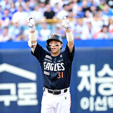 2타점 2루타 뽑아낸 한화 손아섭, '세리머니 멋지게'