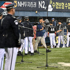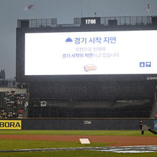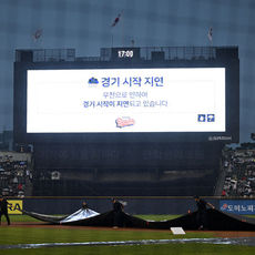 갑작스러운 비로 경기 시작 지연되는 두산-LG 경기