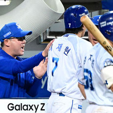삼성 이재현, '추격 알리는 1타점 2루타 뽑아내고'