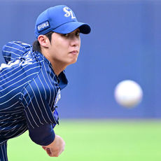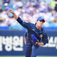 김성윤 멋진 송구에 모자 벗어 인사 전하는 삼성 선발 원태인