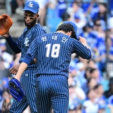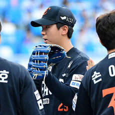 리베라토 좋은 수비에 인사 전하는 한화 선발 황준서
