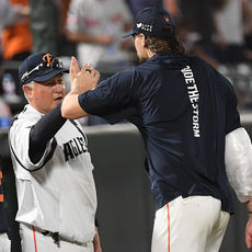 설종진 감독대행,'박정훈 첫 세이브 축하해'