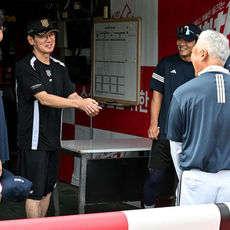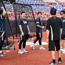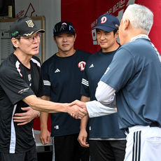 "오네가이시마스" 고토 코치에 일본어로 인사하는 이강철 감독