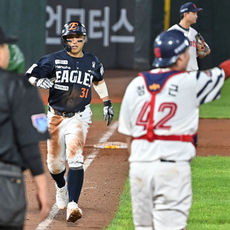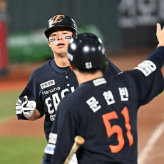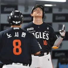 노시환, 문현빈과 투런포 기쁨의 하이파이브