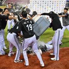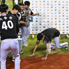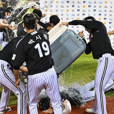 손주영에 쏟아지는 '10승' 축하 물폭탄