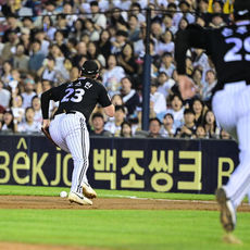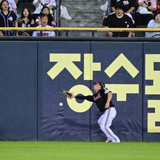 양의지 2루타 타구 놓치는 문성주