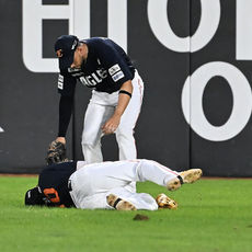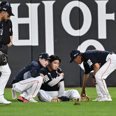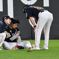이진영, 수비 도중 부상으로 통증 호소