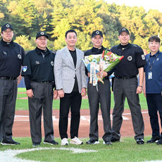 권영철 심판 1500경기 출장 시상식 참석한 KBO 심판진