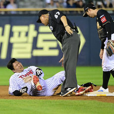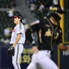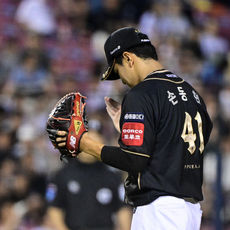 밀어내기 볼넷 허용하며 아쉬워하는 김재윤