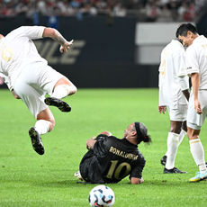 이영표 태클에 걸려 넘어지는 호나우지뉴