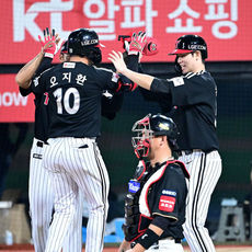 오지환, '승부에 쐐기를 박는 9회 스리런포 하이파이브'