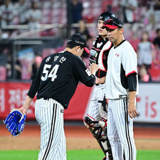 경기 마무리짓지 못하고 마운드 내려가는 LG 유영찬
