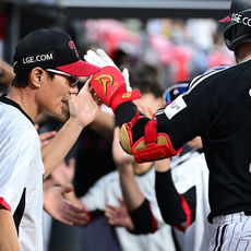 오스틴 1회 선제 솔로포에 기뻐하는 LG 염경엽 감독