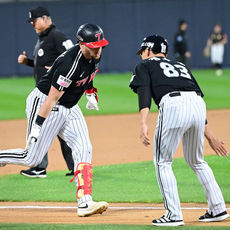 KT 선발 헤이수스 상대로 선제 솔로포 뽑아낸 LG 오스틴
