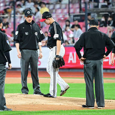 107분 우천 중단 후 헤이수스 이어 마운드 오른 문용익