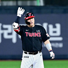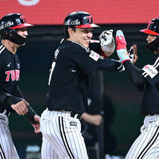 박동원, '달아나는 스리런포에 감출 수 없는 기쁨'