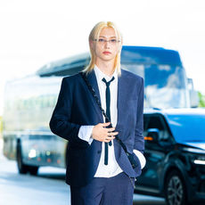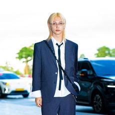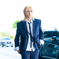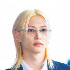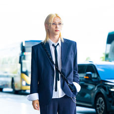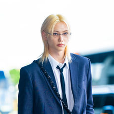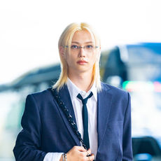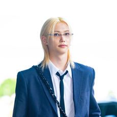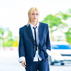 스트레이 키즈 필릭스,'네이비 수트-루즈핏 셔츠, 롱 타이로 자유로운 포멀룩'