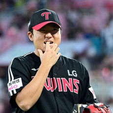 총알 직선타 잡아내며 1회 넘긴 LG 선발 송승기, '손가락 깨물며'