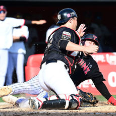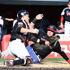KT 우익수 안현민, '멋진 홈 송구로 실점 막아내고'