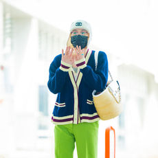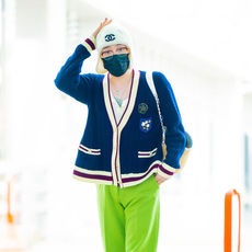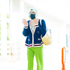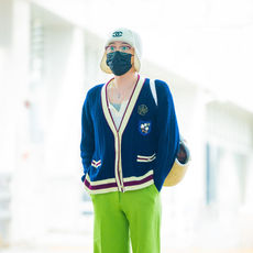 지드래곤..화려한 라임 그린 와이드 팬츠