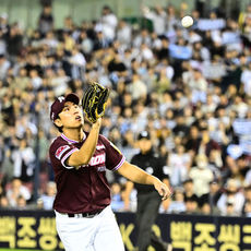 윤석원, 강승호 보내기 번트 타구 뜬공으로 처리