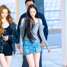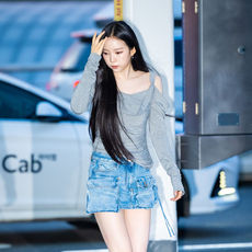 미야오 나린,'그레이 톱 & 데님 스커트로 트렌디하게'
