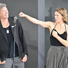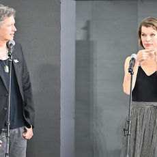 부산 영화팬들 앞에서 밀당하는 밀라 요보비치와 남편 폴 앤드슨 프로듀서